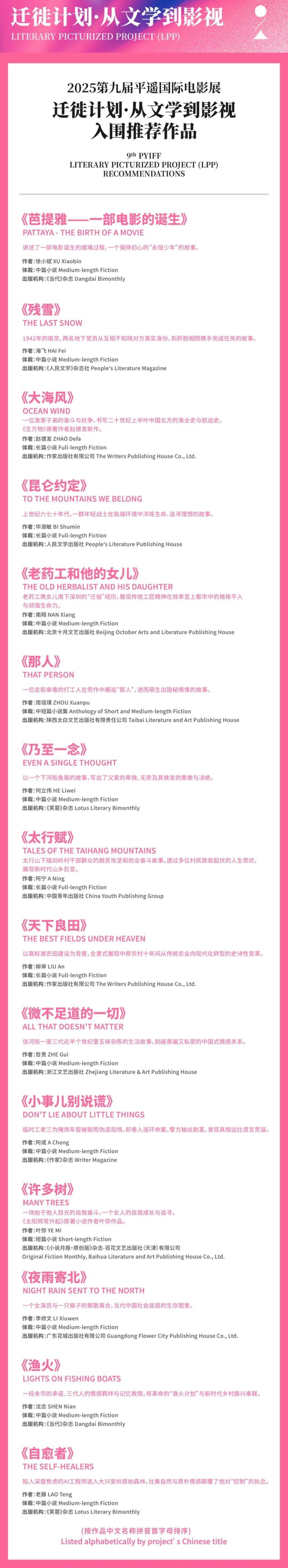 平遥国际电影展创办于2017年,是海内外颇具影响力的电影盛会之一。第九届平遥国际电影展将于9月24日至30日在山西平遥举办。入围推荐作品及其出版编辑代表将受邀出席第九届平遥国际电影展。