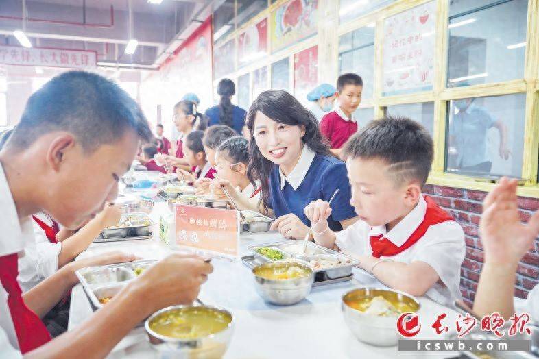 长沙美食、长沙老照片、长沙童谣和俚语、长沙老建筑……9月1日记者走进仰天湖实验学校食堂——好有味儿童生活美学馆,便闻到浓浓的“长沙味”。洋葱牛肉丝、西红柿炒鸡蛋、蒜蓉西蓝花、玉米胡萝卜筒子骨汤,新学期第一餐营养均衡色香味俱全。