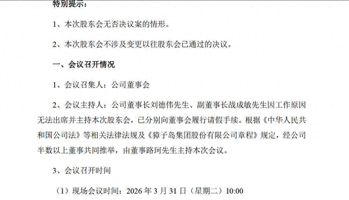 公告显示,獐子岛董事长刘德伟、副董事长战成敏因工作原因无法出席并主持本次股东会,已分别向董事会履行请假手续。根据《中华人民共和国公司法》等相关法律法规及《獐子岛集团股份有限公司章程》规定,经公司半数以上董事共同推举,由董事路珂主持本次会议。