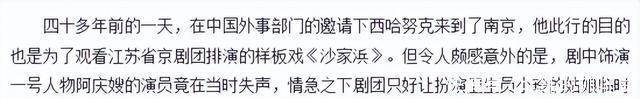 命运的转折再次降临。 时任柬埔寨国王的西哈努力应邀来到中国访问,观看京剧《沙家浜》。 原定的“阿庆嫂”演员突然失声,无法演出,这个机会如同天上掉馅饼一样,落在了配角王馥荔的身上。